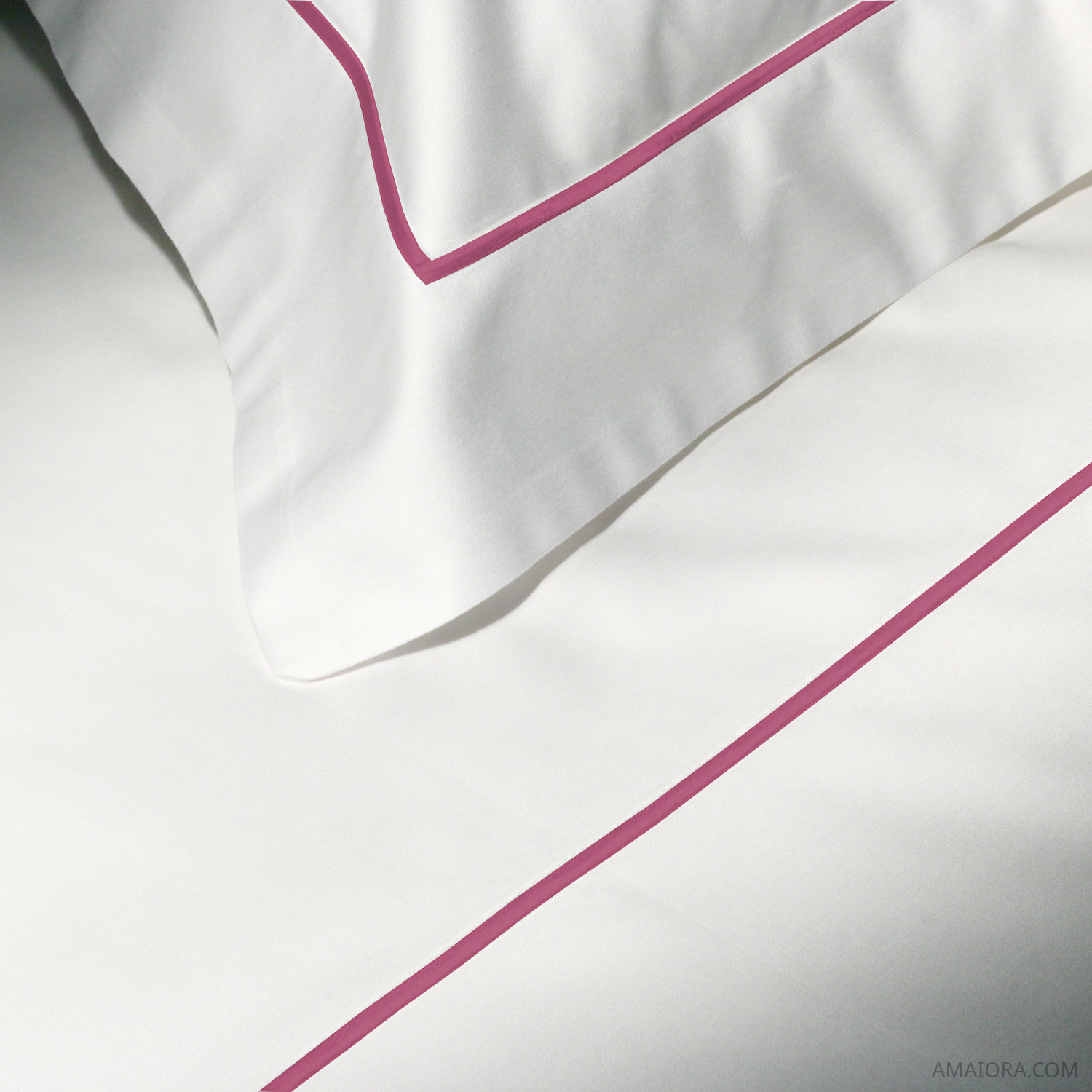 Duvet Cover Essentia Custom Bourdon | Sateen 600 TC | White with Embroidery in Raspberry Red