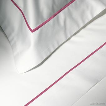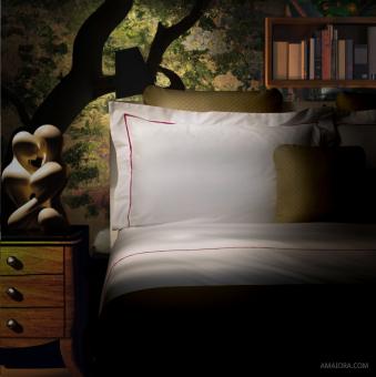 Customize your Essentia shams with a discreet bourdon embroidery in raspberry red. Its clean, sober and quiet lines remain unchanged. The fabric is made of extra-long cotton fibers. A higher fibre category than that does not exist. 3 flanges, 2 shams