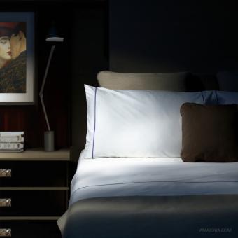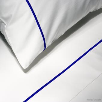 Federe Essentia Custom Bourdon Percalle 400 TC Bianco con Ricamo in Blu Oltremare