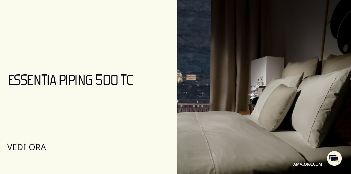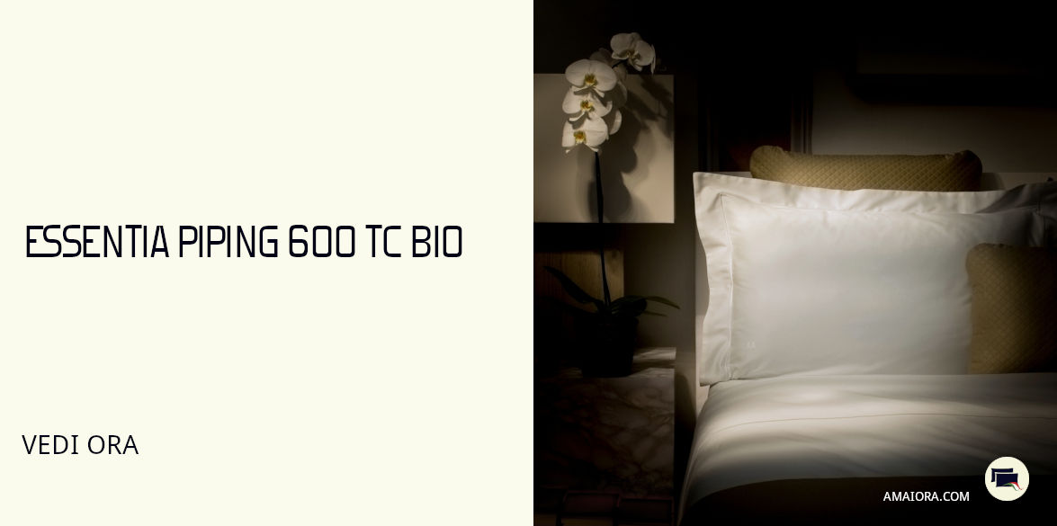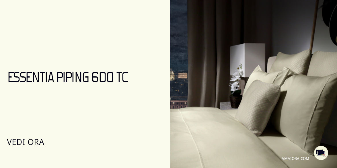 Il colore spiaggia è un beige caldo, quasi dorato. La lucentezza del raso, l’elevato numero di fili e il beige quasi dorato, rendono il modello Essentia Piping accogliente, elegante e di classe.