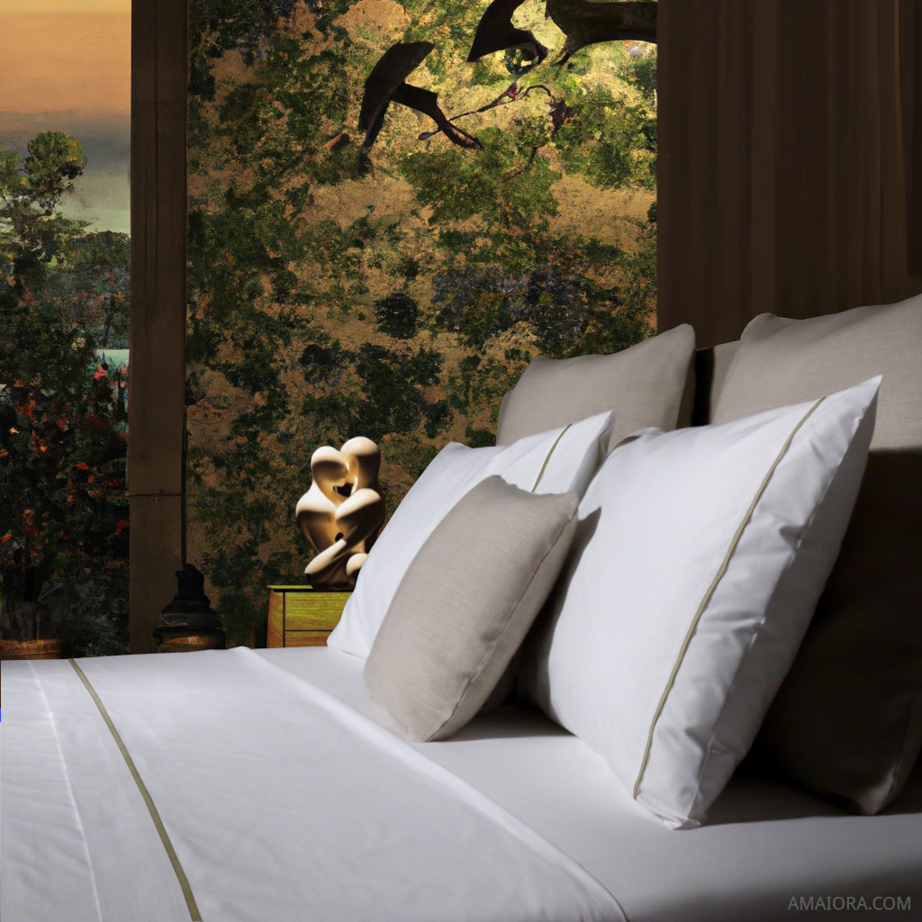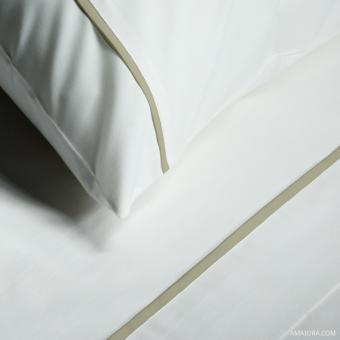 Completo Letto di Lusso Essentia Custom Piping - in Percalle 400 TC Bianco con Striscia in Color Spiaggia