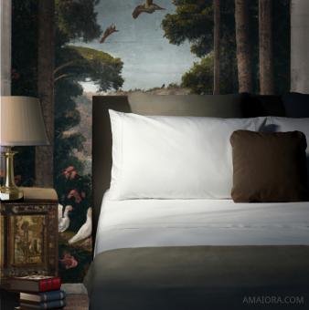 Personalizza il tuo completo letto Essentia con un discreto ricamo bourdon nel prezioso cotone egiziano makò in avorio. Le sue linee nitide, sobrie e tranquille rimangono invariate. Composto da: sotto, sopra, 2 federe.