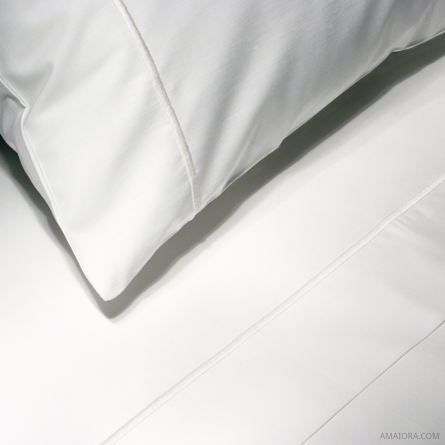Completo Letto Essentia Custom Bourdon Percalle 400 TC Bianco con Ricamo in Avorio