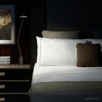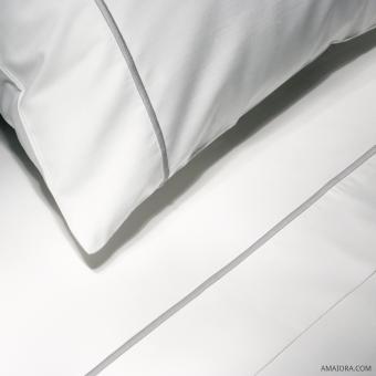 Completo Letto Essentia Custom Bourdon Percalle 400 TC Bianco con Ricamo in Grigio Medio