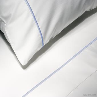 Federe Essentia Custom Bourdon Percalle 400 TC Bianco con Ricamo in Blu Chiaro