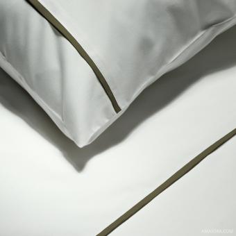 Lenzuola di Lusso Essentia Custom Piping - Federe - in Percalle 400 TC Bianco con Striscia in Verde Oliva