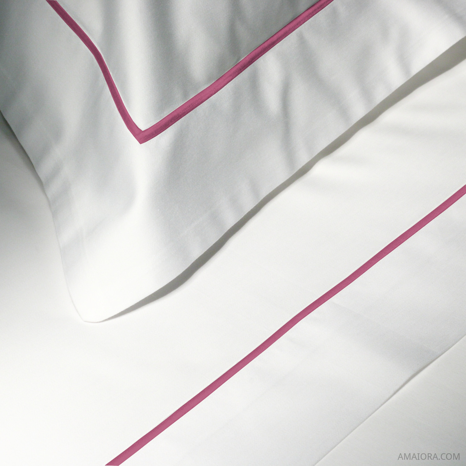 Personalizza il tuo completo letto Essentia con un discreto ricamo bourdon nel prezioso cotone egiziano makò in rosso lampone. Le sue linee nitide, sobrie e tranquille rimangono invariate. Composto da: sotto, sopra, 2 federe.